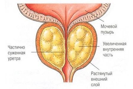 Диффузные изменения паренхимы, вызванные аденомой, проявляются схожим образом с простатитом. Мочеиспускание становится затрудненным, частым и неполным, увеличивается количество ночных позывов. Этот процесс не приносит ожидаемого облегчения. Часто данная патология сопровождается энурезом.