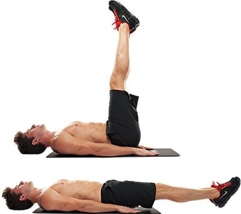 | Подъем ног из положения лежа | Это упражнение направлено на тренировку прямой мышцы живота, в частности, ее нижней части (от пупка до паха). Укрепление этой зоны способствует улучшению кровотока к фаллосу и повышению потенции. Обратите внимание, что медицинские препараты (лекарства, витамины, БАД) упоминаются только для информации. Мы настоятельно не советуем их применять без назначения врача. Рекомендуем ознакомиться с материалом: «Почему нельзя принимать медицинские препараты без назначения врача?». Порядок выполнения: 1. Лягте на спину на мягкую поверхность (гимнастический коврик, толстое полотенце или одеяло). 2. Руки расположите вдоль тела, ладони помогут удерживать корпус в стабильном положении. 3. Сведите ноги вместе и поднимите их вверх (угол между бедрами и верхней частью тела должен быть прямым). 4. Опустите ноги вниз. 5. Повторите подъемы 15-18 раз. 6. Выполните 4 подхода с минутным перерывом | |