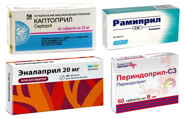 | * Эналаприл (Энап). * Лизиноприл (Диротон). * Периндоприл (Перинева). * Рамиприл (Амприлан). * Фозиноприл (Фозикард). * Каптоприл (Капотен) | * Валсартан (Валз). * Лозартан (Лозап, Блоктран). * Телмисартан (Микардис). * Эпросартан (Теветен). * Кандесартан (Атаканд). * Ирбесартан (Апровель) |