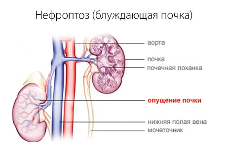 - механическое смещение почки в результате чрезмерных физических нагрузок;