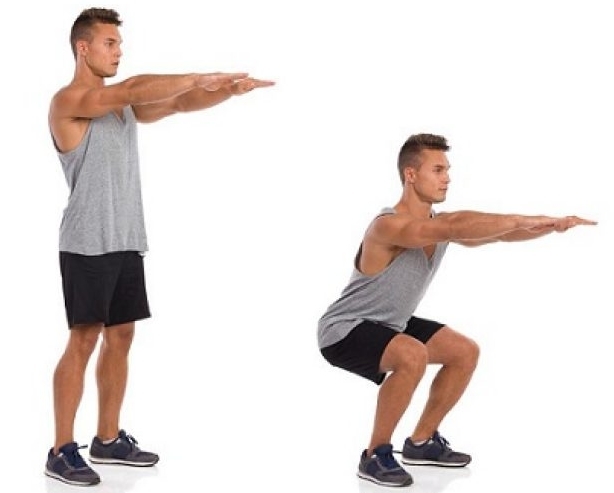 - Повторите приседания 20-25 раз.