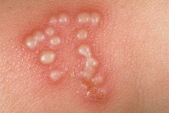 Эти высыпания представляют собой пузырьки, заполненные жидкостью. Процесс начинается с покраснения, которое сопровождается зудом и жжением. Пузырьки могут лопаться и подсыхать. После заражения вирус остается в организме на всю жизнь и может периодически рецидивировать при ослаблении иммунной системы. Лечение заболевания осуществляется с помощью противовирусных препаратов, таких как ацикловир, фамцикловир или валацикловир.