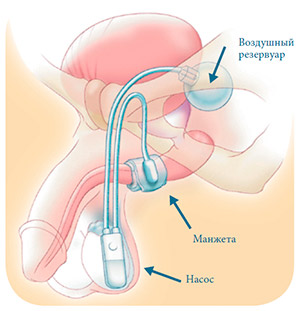 Данная методика включает в себя установку специальной манжеты, которая сжимает мочеиспускательный канал. Управление манжетой осуществляется с помощью насоса, а сжатие уретры достигается за счет наполнения манжеты жидкостью. При снижении давления вода перемещается в специальный резервуар.
