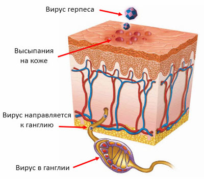 После первого инфицирования в организме формируется пожизненный иммунитет. Однако вирус остается в организме в скрытом состоянии, преимущественно в нервных клетках спинномозговых ганглиев. Носительство инфекции само по себе не представляет угрозы для здоровья. Рецидивы заболевания могут возникать при ослаблении иммунной системы, что может быть вызвано: