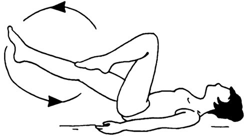 Упражнение 1 — «велосипед». Согнутые в коленях ноги поднимаются и выполняются вращательные движения в течение примерно 2 минут.
