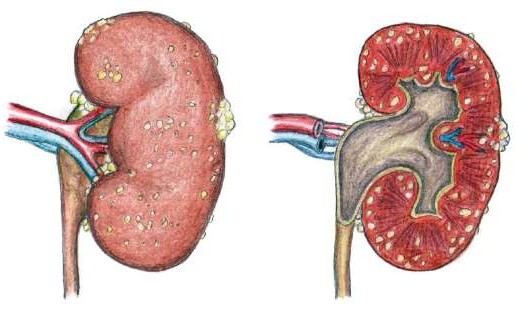 Гломерулонефрит может проявляться до 40 лет, тогда как нагноение кист с образованием абсцессов чаще наблюдается у людей старше 50 лет.