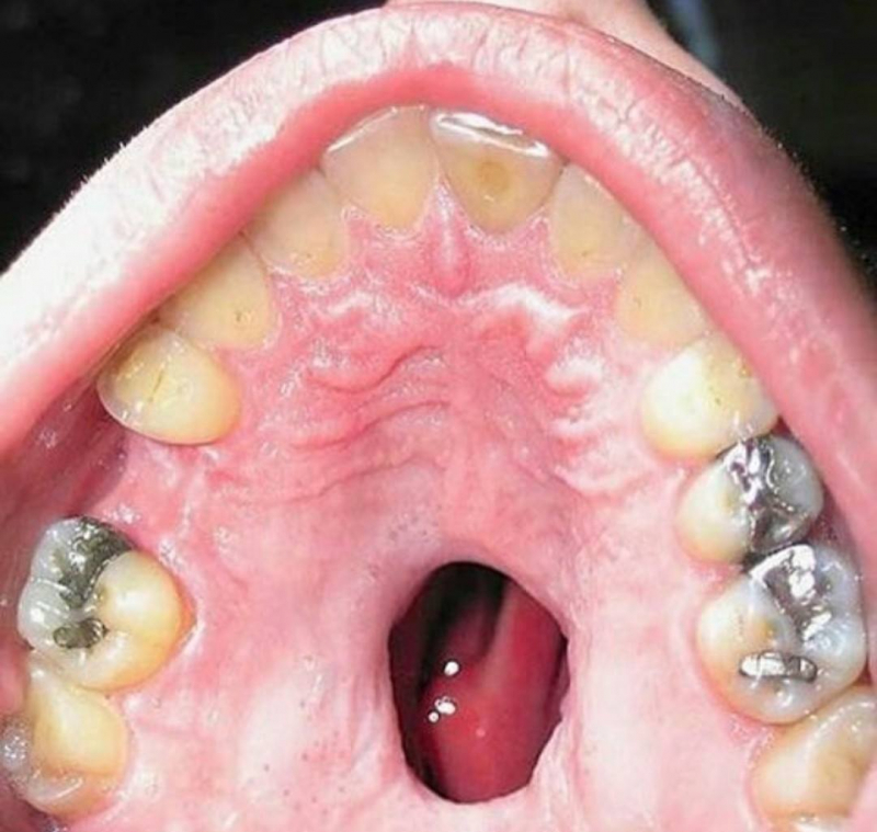 На мягком небе у пациентов также появляются гуммы, что вызывает отек и покраснение. При рубцевании может произойти деформация неба, его укорочение и сращение со стенками глотки.