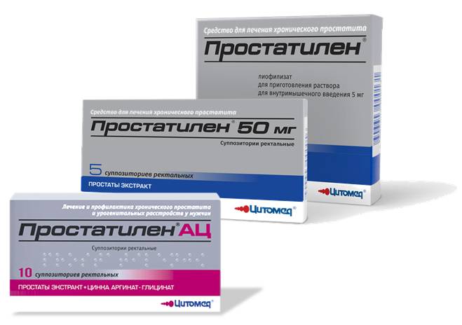 | Комбинированный препарат в форме ректальных суппозиториев «Простатилен АЦ» | * 0,03 г активного вещества; * аргинил-глицинат цинка дигидрохлорид (в пересчете на аргинил-глицинат цинка) 0,18 г; * жидкий парафин 0,06 г; * твердый жир (Витепсол или Эстарам, марки W 35) — 1,9 г | 10 штук в упаковке — от 1600 рублей |